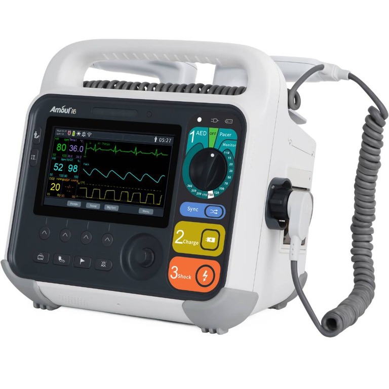 Amoul i6 PRO+ — современный медицинский прибор для мониторинга жизненных показателей и оказания неотложной помощи при остановке сердца. Совмещает функции дефибрилляции (внешней и внутренней), неинвазивной кардиостимуляции и многопараметрового мониторинга. Оптимален для реанимации, операционных, ОИТ и машин скорой помощи.