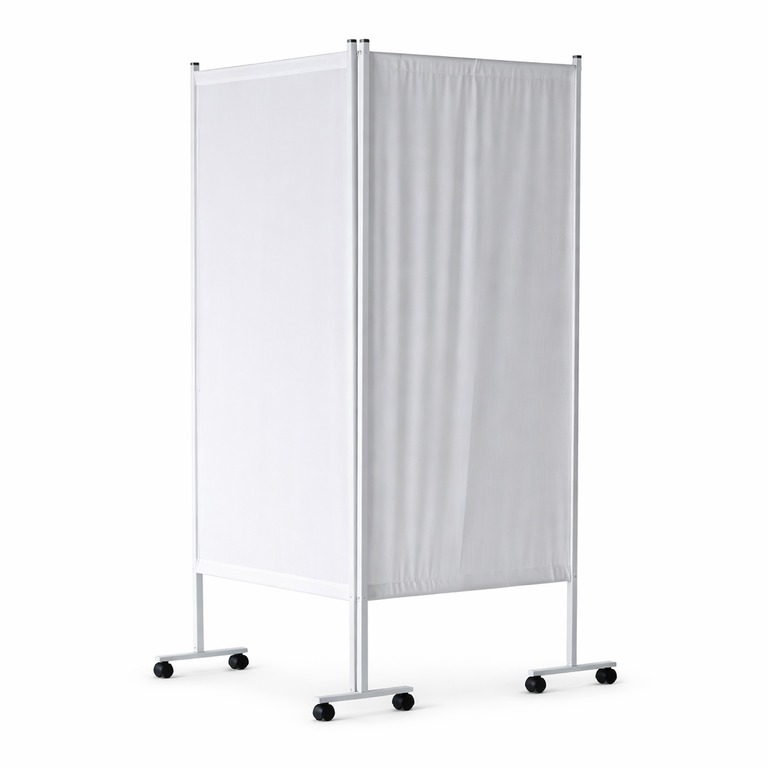 Двухсекционная конструкция с колесами позволяет легко перемещать ширму и быстро адаптировать пространство.