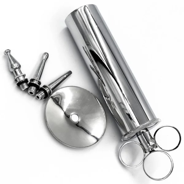Шприц по Жане (Janet), ушной, для промывания полостей, с силиконовым кольцом, нержавеющая сталь, с тремя насадками, 150 мл