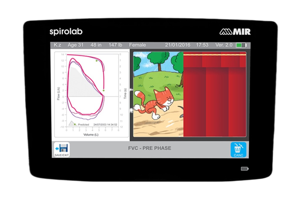 Spirolab — это полноценный настольный спирометр с модулем оксиметрии. Оснащён 7-дюймовым цветным сенсорным экраном и встроенным термопринтером, что позволяет проводить быстрые и расширенные исследования без использования компьютера.